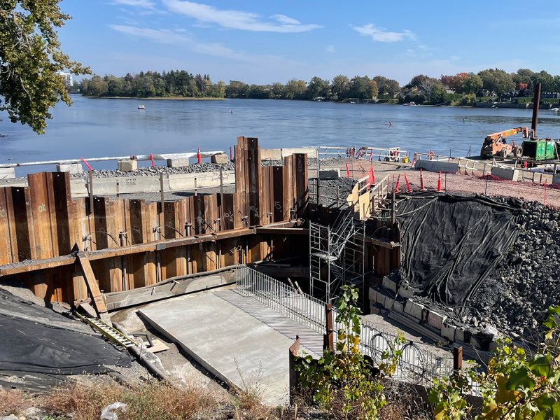 Structure de recouvrement au-dessus de la bretelle de sortie de l’autoroute Ville-Marie avec une structure architecturale